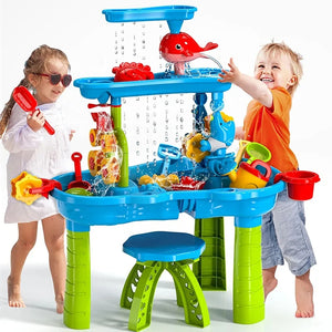 The KIDSPLASH | 3-in-1 Outdoor Sand & Water Table For Kids transforms your backyard or beach day into a world of imagination, learning, and sensory fun. With three dynamic play levels for sand, water, and accessories, your child stays engaged while developing fine motor skills and creativity. No tools needed to set up, and everything stores neatly inside—mess-free magic included.