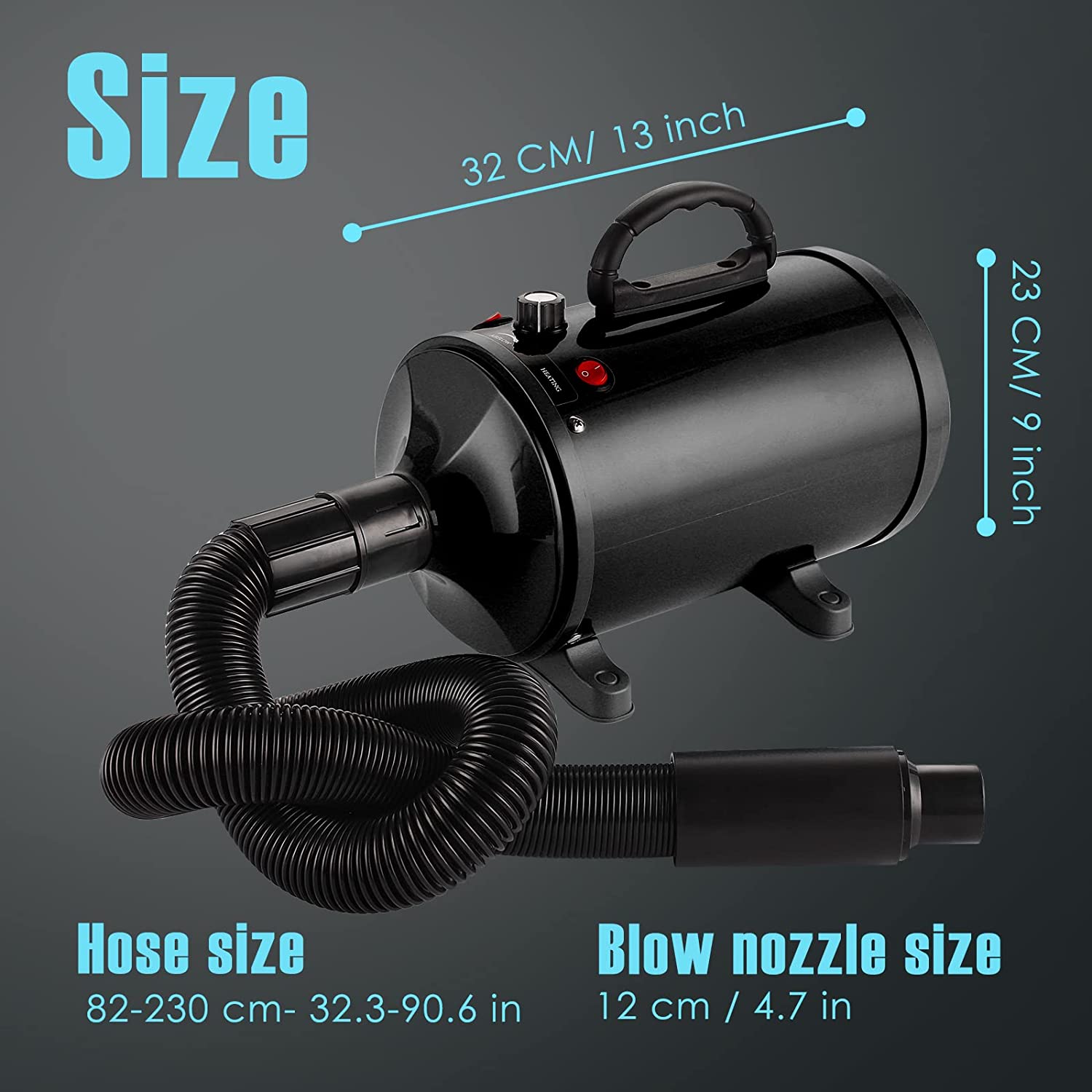 Comes with 4 different nozzle attachments for targeted drying—perfect for undercoats, paws, and full-body grooming. The flexible hose extends from 25.6" to 78.7", giving you the freedom to reach every spot with ease.