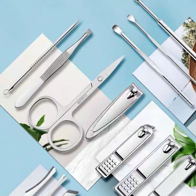 Includes 19 professional tools for complete manicure and pedicure care — trimming, shaping, cleaning, and polishing.
